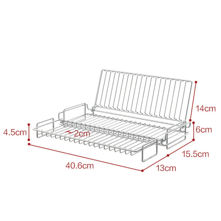 एकूण आकार 40.6 सेमी/15.98 इंच आहे, मुख्य भागाची उंची 6 सेमी/2.36 इंच आहे, उभ्या काठाची उंची 14 सेमी/5.51 इंच आहे, बाजूच्या विस्ताराची रुंदी 15.5 सेमी/6.1 इंच आहे, ड्रेनेज गॅप 2 सेमी/0.78 इंच आहे हे डिझाइन बहुतेक घरगुती सिंगल-स्लॉट/डबल-स्लॉट सिंकसाठी योग्य आहे आणि पाणी साचणे टाळून, पाणी लवकर वाहते याची खात्री करते.
